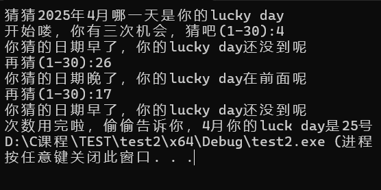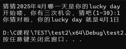 printf("猜猜2025年4月哪一天是你的lucky day\n");