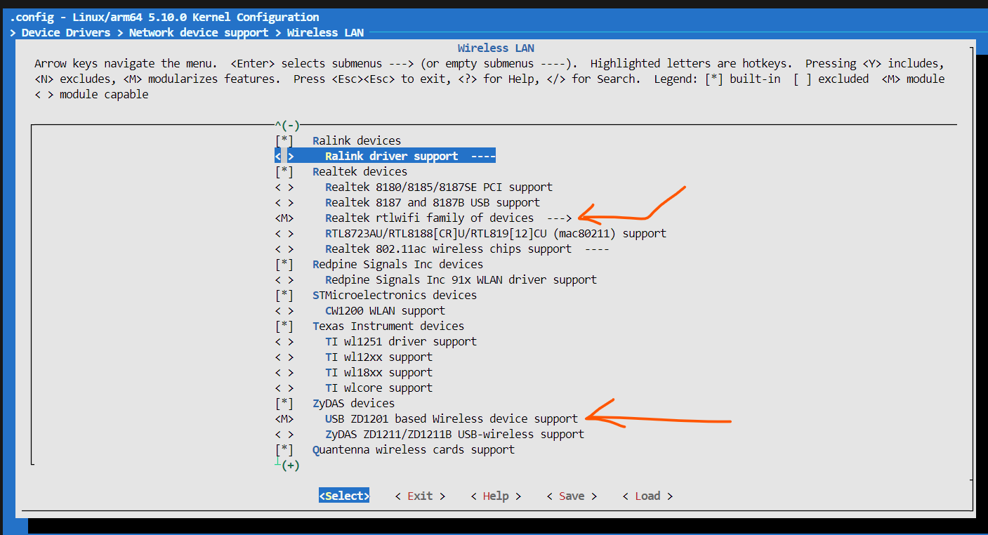 配置了 CFG80211 后,进入 Device Drivers->Network device support->Wireless LAN,