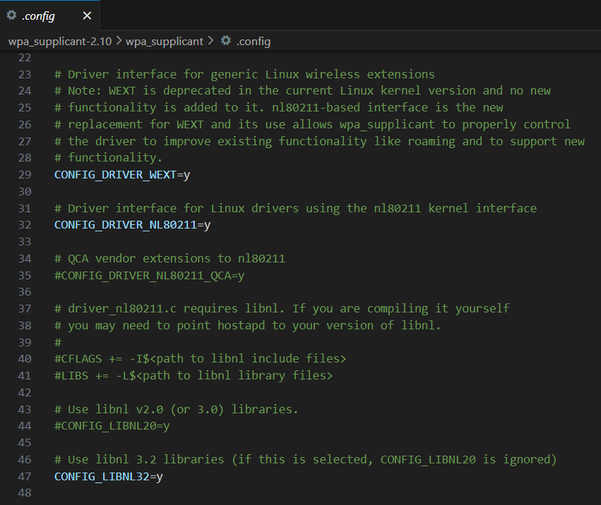 首先将 wpa_supplicant 下的 defconfig 文件拷贝一份并重命名为 .config