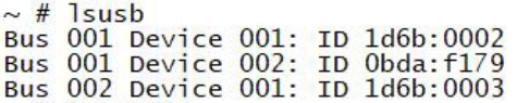 然后执行 lsusb 命令,出现 USB ID 即为识别到设备: