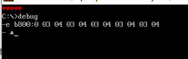 从b800:0开始的内存单元开始,依次写入十六进制数据04 03,重复写5次。
