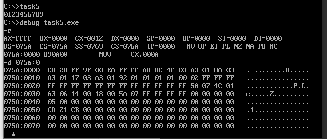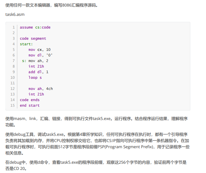 在debug中查看task5.exe的程序段前缀PSP