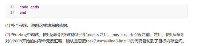 (1)第一空填写 cs,因为这是程序开始的地址