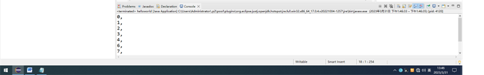 package yuan; public class helloworld { public static void main(String[] args) { // TODO Auto-generated method stub for(int i=0;i<=9;i++) { if(i==5) { continue; } System.out.println(i+","); } } }