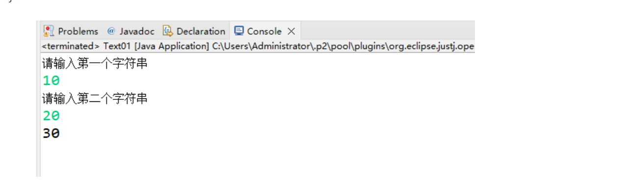 package alu; import java.util.Scanner; public class ass { public static void main(String[] args) { Scanner sc=new Scanner(System.in); int sum=0; String a=sc.next(); String b=sc.next(); int number1 =Integer.parseInt(a); int number =Integer.parseInt(b); sum=number1+number; System.out.println("和为"+sum); } }