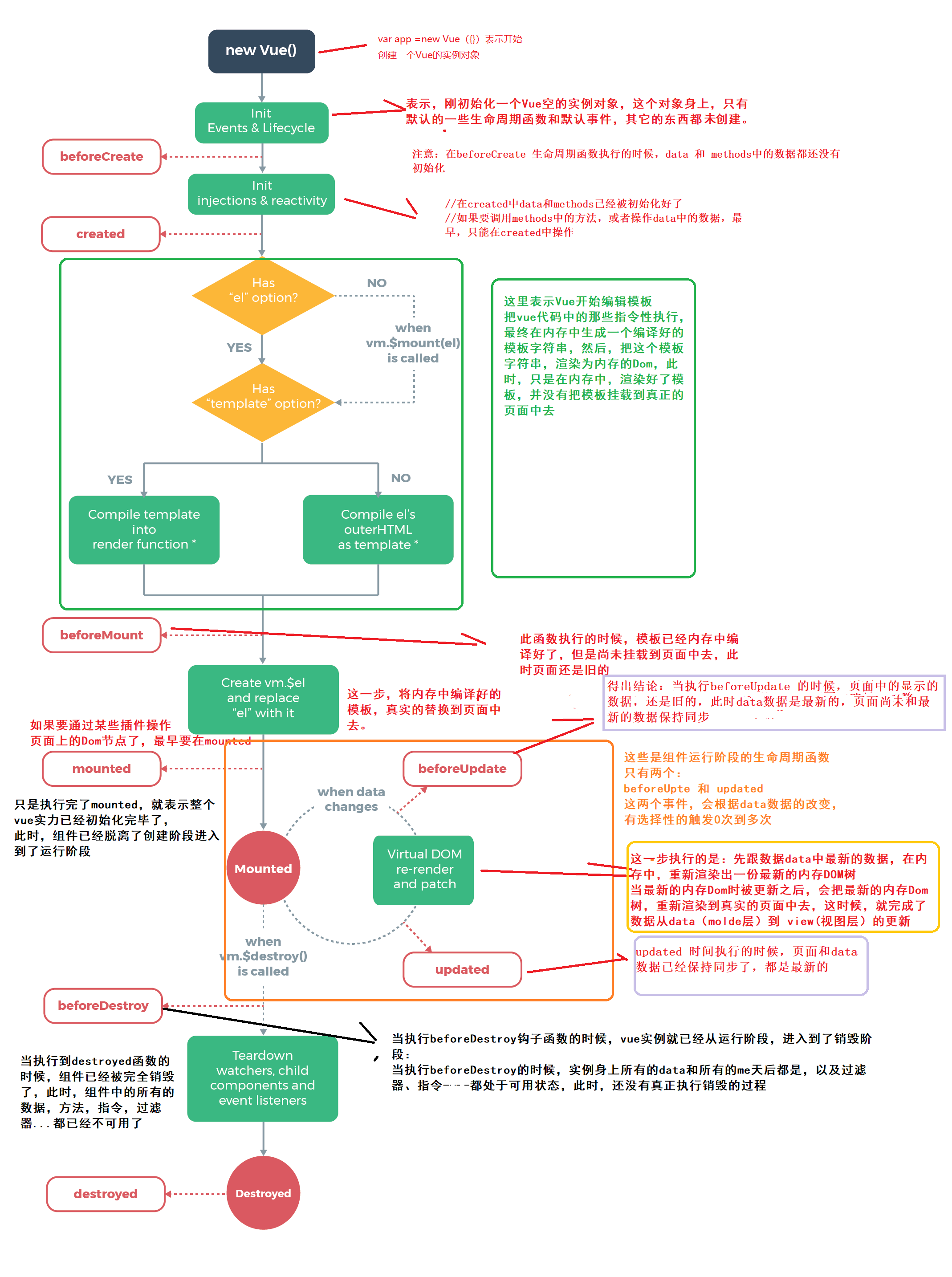从 vue 实例创建、运行、到销毁期间,总是伴随各种各样的事件,这些事件统称为生命周期。