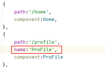 { path:'/home', component:Home, }, { path:'/profile', component:ProFile },
