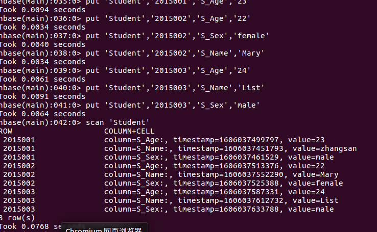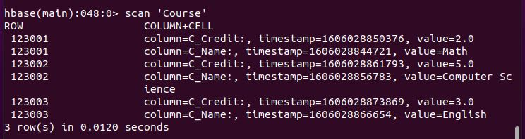 使用HBase Shell命令 或 使用HBase Java API完成: