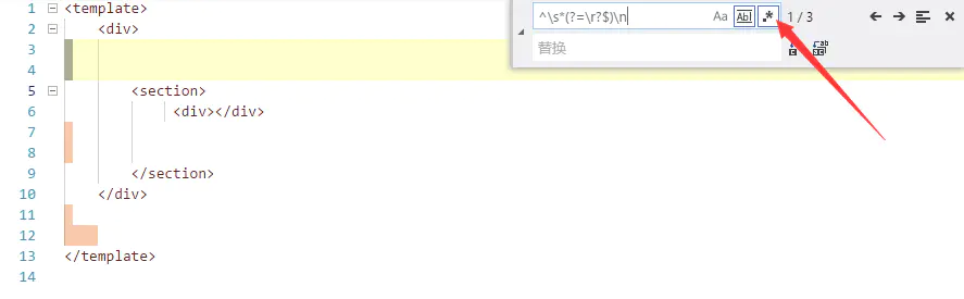 2.在查找中粘贴以下正则表达式^\s*(?=\r?$)\n,点击使用正则表达式查找。