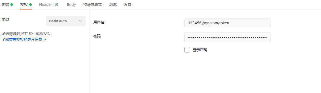 用户名和密码分别为账号邮箱及刚才设置的Api密钥 注意:**邮箱后缀要加上/token**