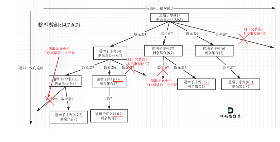 6.递增子序列:同一父节点下不能重复使用同一值的节点