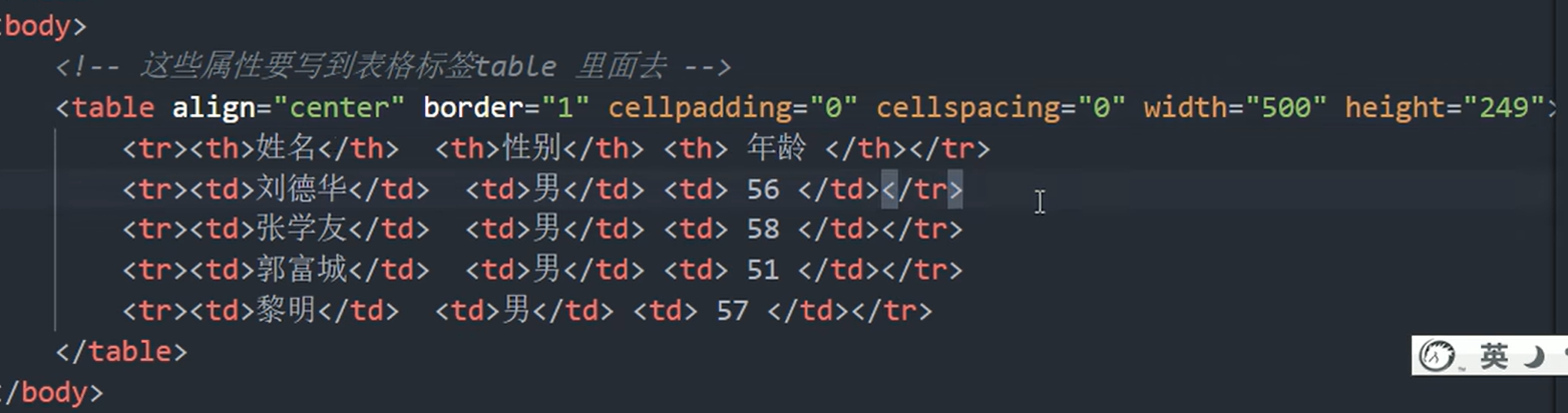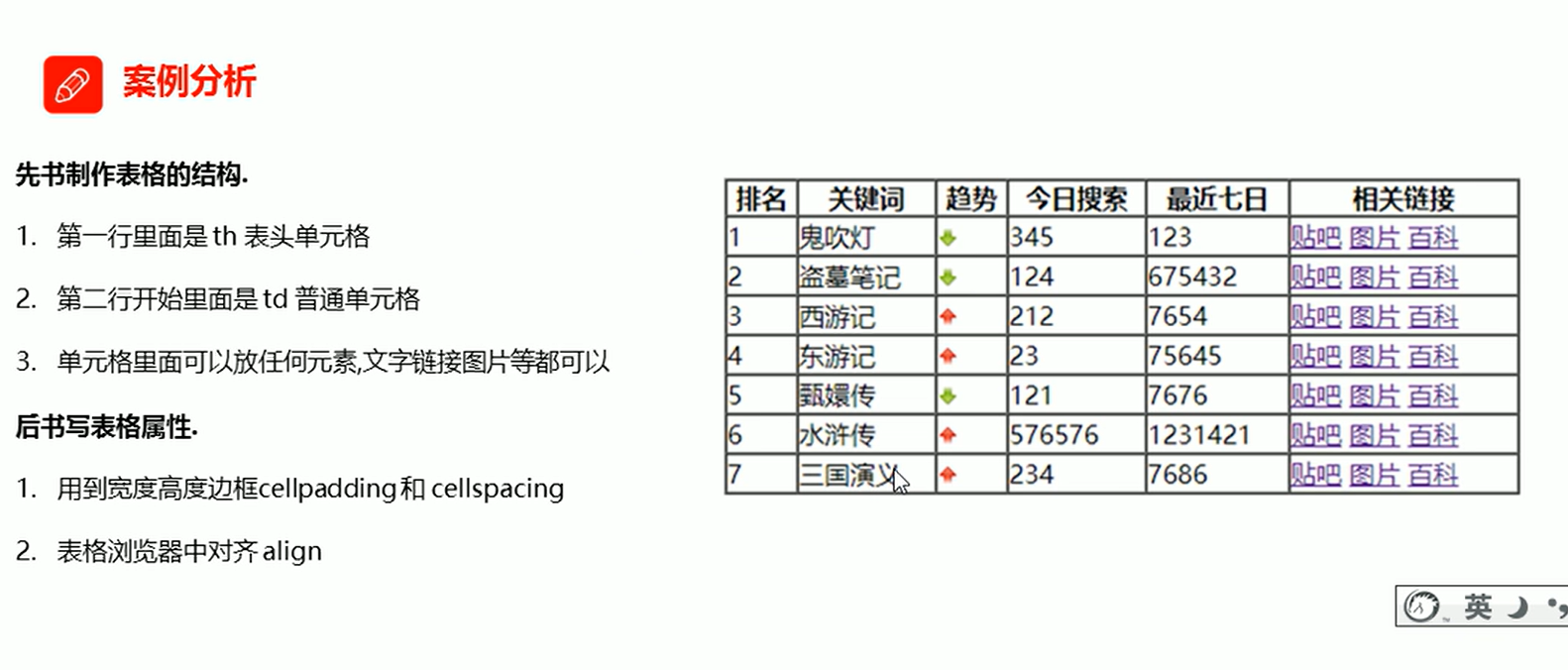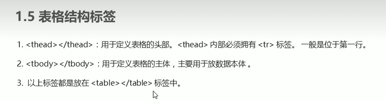 总结:表头单元格也是单元格,常用于表格第一行,表头单元格里面的文字会加粗居中显示.