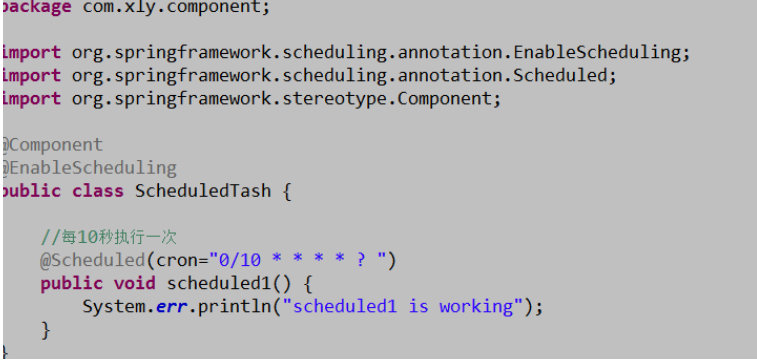 4) 正常启动SpringBoot 由于 @Component 注解的存在,声明支持Spring的注解驱动查找,所以SpringBoot启动时,可以找到该类,并同时加载该任务计划 2. cron表达式: 秒 分 时 日 月 星期 年