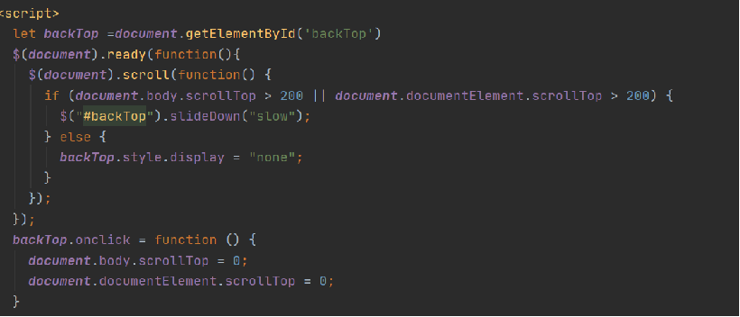 三、网页大于200像素时,按钮会出现,点击按钮回到顶部