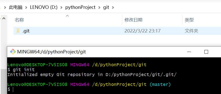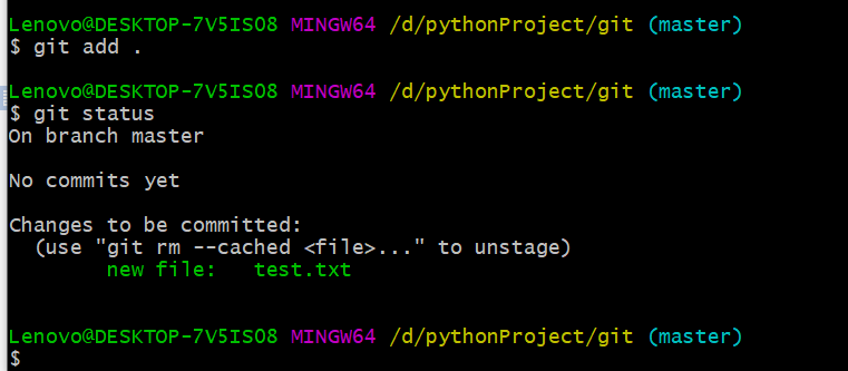 输入git commit -m “提交时的注释信息"