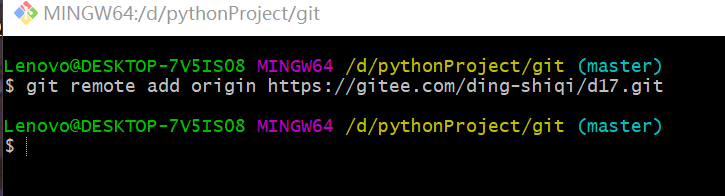 输入“git remote add origin 复制的码云git地址”