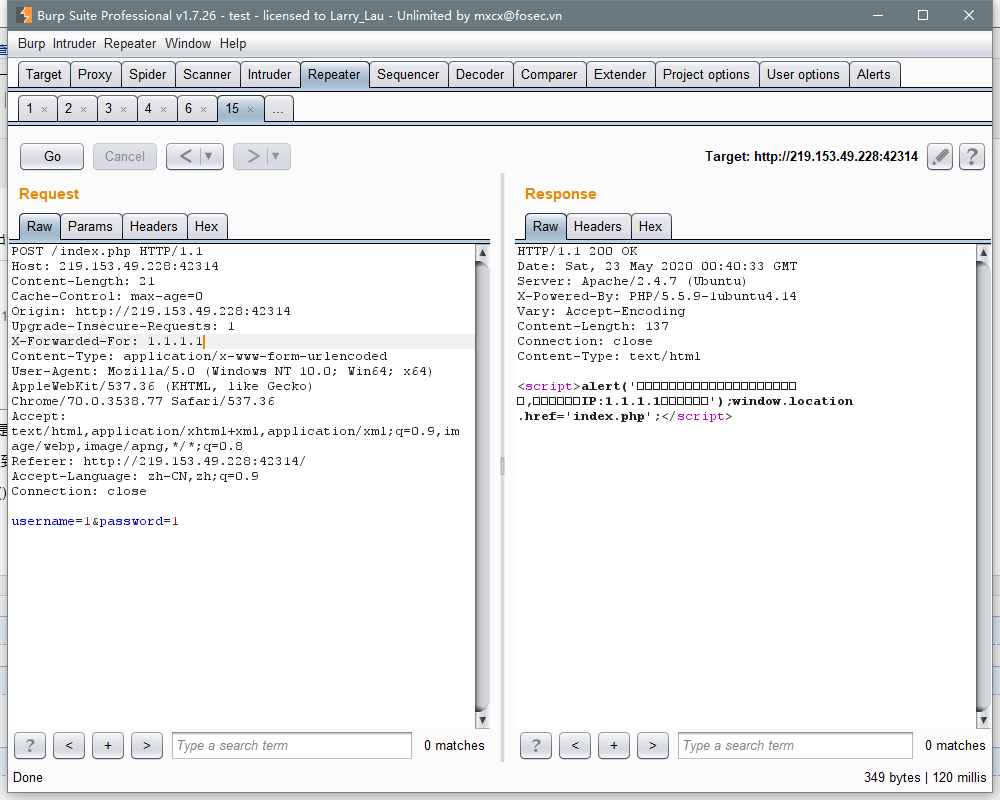 抓包加入XFF头,尝试是否会更改服务端读取到的ip地址