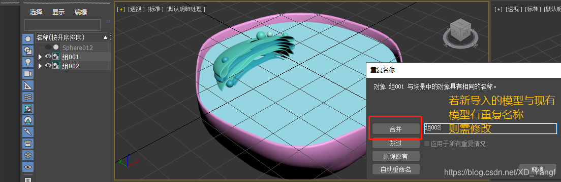 若新导入的模型与现有场景中的模型有相同名称,则需修改。