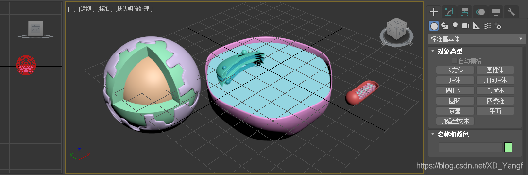 创建几何球体,半径为36、分段为16,此球体准备用作细胞膜的骨架。