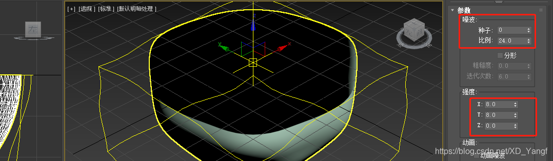 像上一篇一样,将球体转换为可编辑多边形之后,先切割掉上半部分,然后再直接给个噪波(此处不需要加壳)。