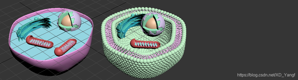 此篇我们来把之前做好的细胞膜和所有细胞器组合在一起,完成细胞的建模,并实现将细胞膜换为磷脂双分子层。