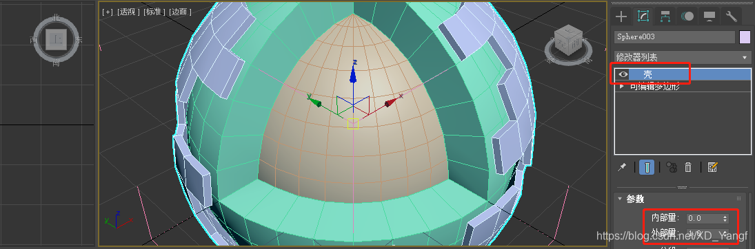 给删减后的内质网球加上壳的修改,此处我设置了壳的外增量为1。