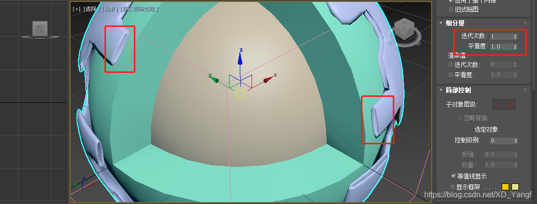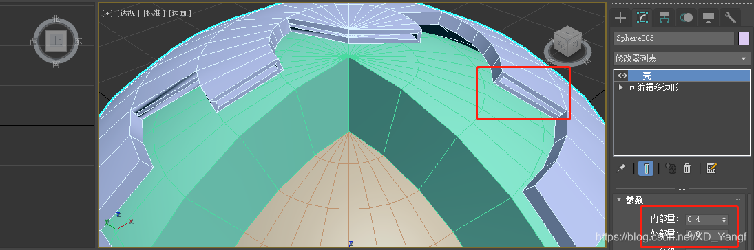 将内质网球转换为可编辑多边形,并删除部分多边形。同时,按F4打开分段显示。