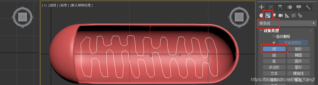 将视角转换到上方,选择样条线中的线,然后在视图中连续点击画线。