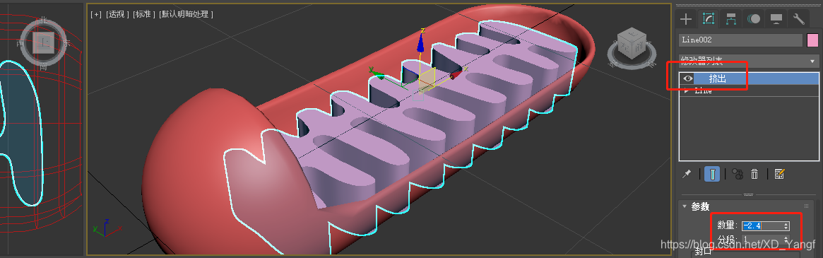 重选整个样条线,然后添加挤出修改,数量我这里设置了-2.4。