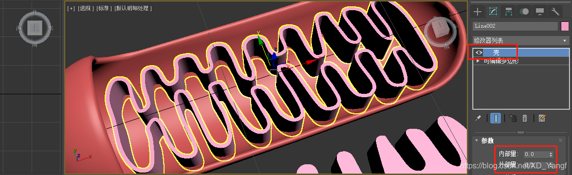 此时,对剩下的线粒体内膜增加壳修改。若外增之后的线粒体内膜超出了线粒体外膜,可适当缩放线粒体内膜(但是要和旁边的线粒体基质模型同时缩放)。