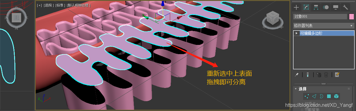 重新选中模型上表面,鼠标点击拖拽,即可将上表面分离。