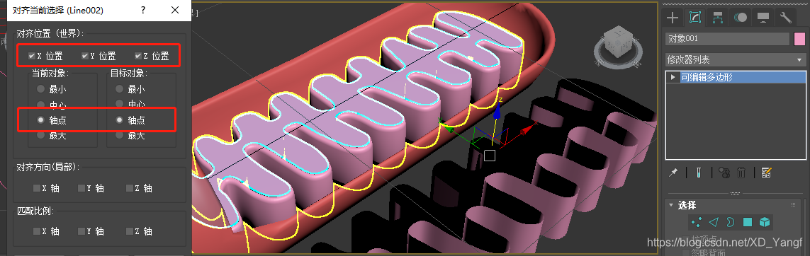 保持新分离出的基质面为选中状态,然后点击工具栏中的对齐功能,并选中线粒体内膜。此时会弹出对齐选项,点击确认即可。