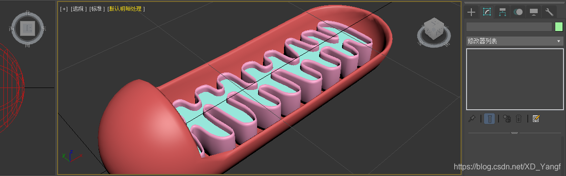 最后,添加一个网格平滑,完成内质网的建模。
