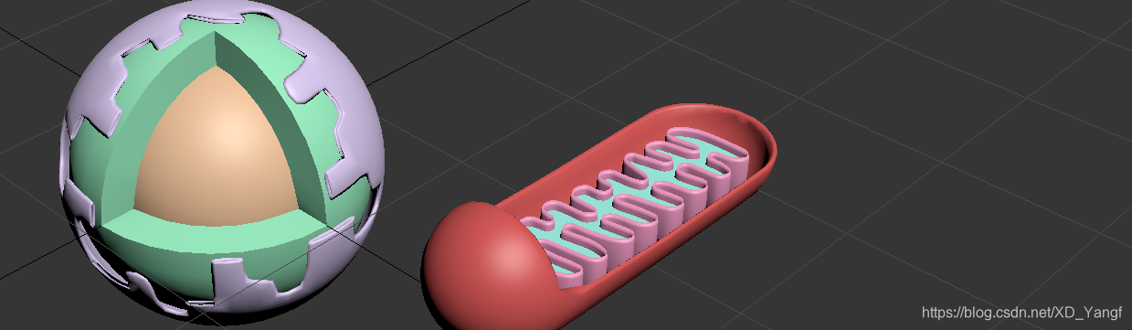 给线粒体基质换一种颜色,并延z轴适当下移,即可完成线粒体的建模。