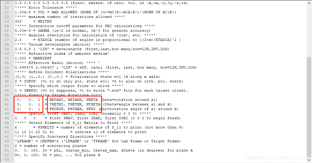 方法很简单,需要在ddscat.par里面设置下面这部分数值。