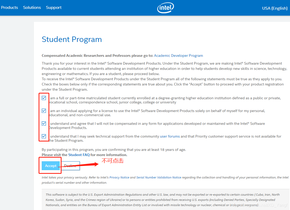 我们发现, 把所有的选框都勾上,Accept按钮也无法被点击。