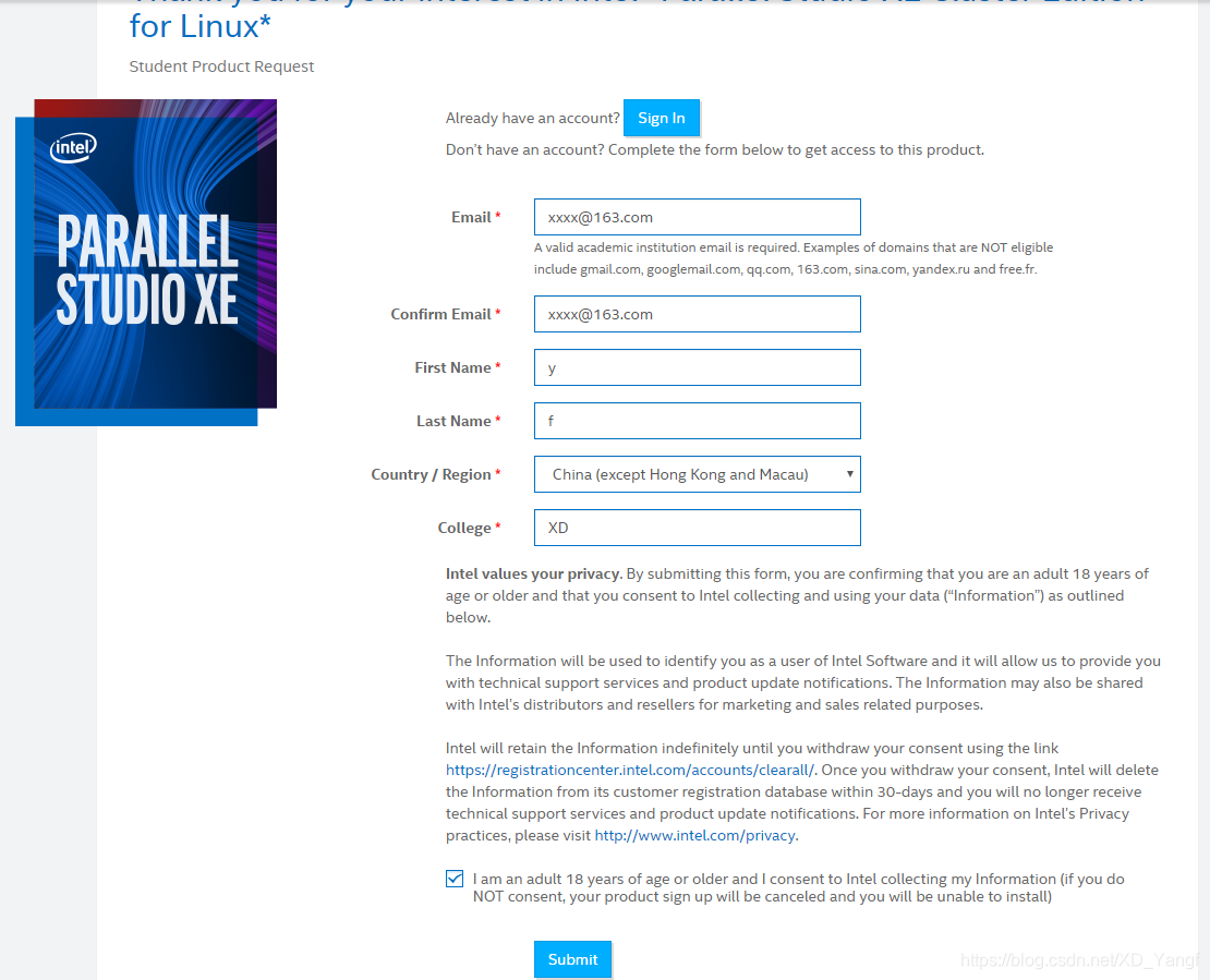 填写完提交之后,如果没有登录此官网,则会跳到一个登录页面。若登录过了,则到后面的下载版本选择页面。若没有Intel账号,需要线性注册。注意,这里的账号和刚才我们填的邮箱没有任何关系。当然,注册账号可以使用刚才的邮箱进行绑定。