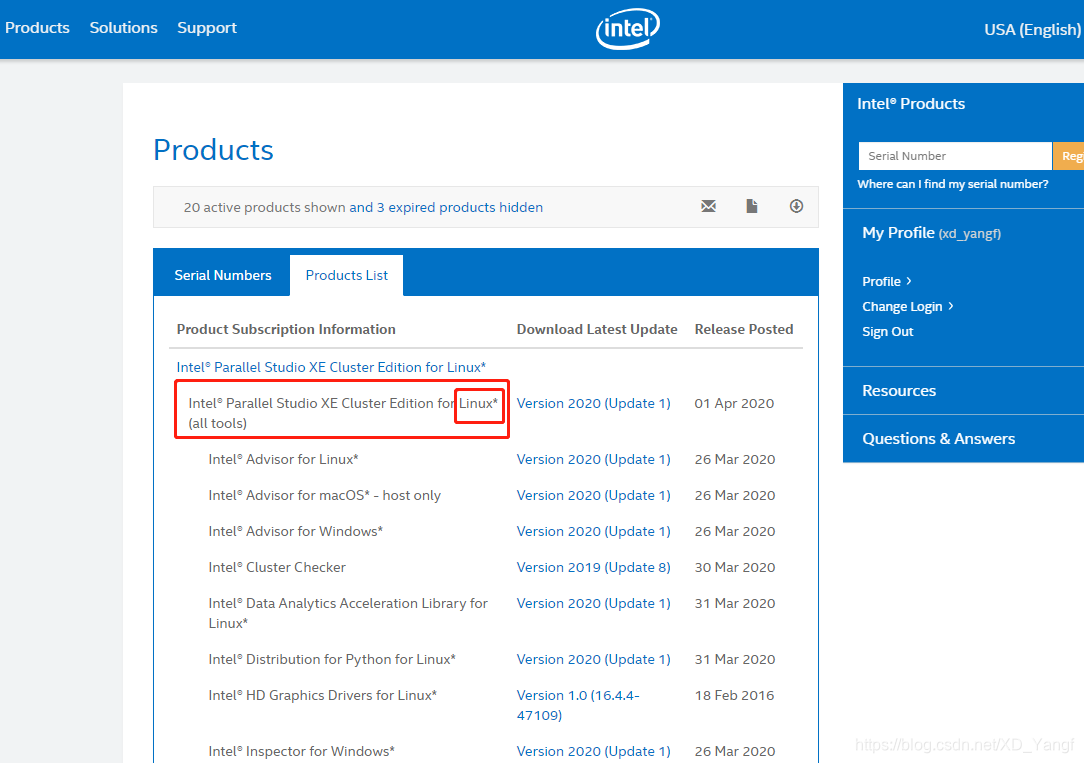 登录完成,选择我们要下载的Intel® Parallel Studio XE Cluster Edition for Linux*版本。