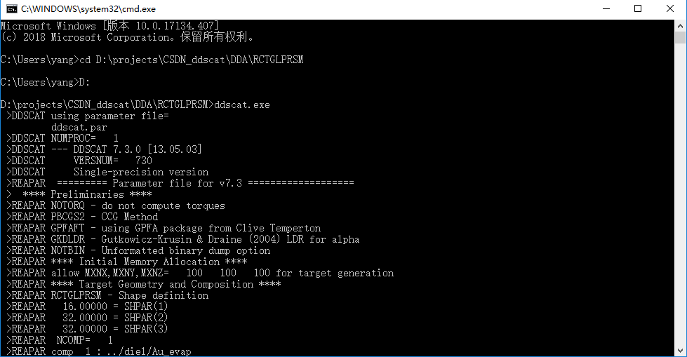 直接双击ddscat.exe,就可以运行程序。但是我们不推荐这样操作,因为如果参数设置有问题,导致程序报错,运行的进程窗口会自动直接关闭闪退,这样我们连报错的内容都看不到。
