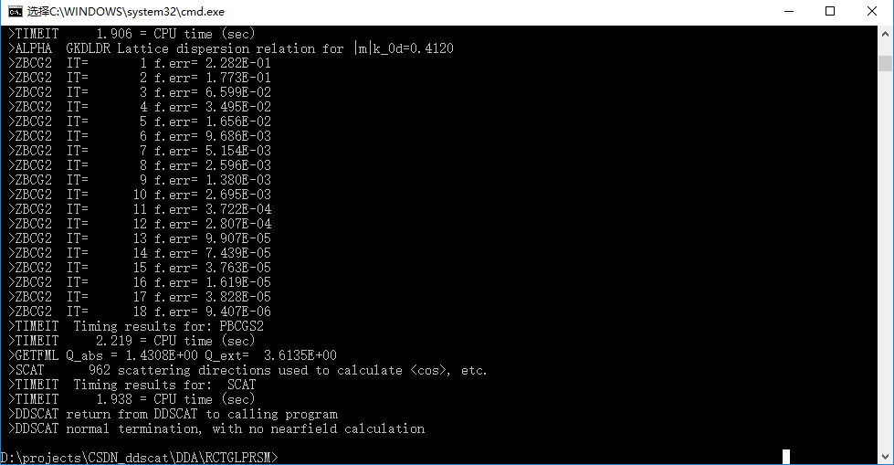 这部分我们直接讲怎么运行一个DDSCAT程序,来计算模型的消光系数(散射和吸收),并计算其近场且通过其他软件呈现近场图。