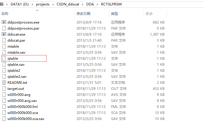 运行结束后,我们可以在当前项目文件夹RCTGLPRSM中看到,产生了很多新的文件。而我们比较关心的是qtable文件,这个文件里面记录了计算后得出的消光系数。