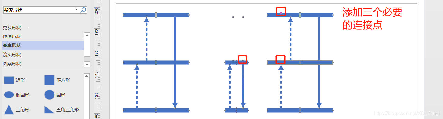 用在绘制ESA中使用到的方法,继续绘制ETU,并添加下图所示的三个必要连接点,准备绘制曲线连接线。