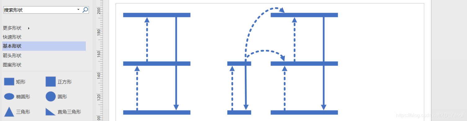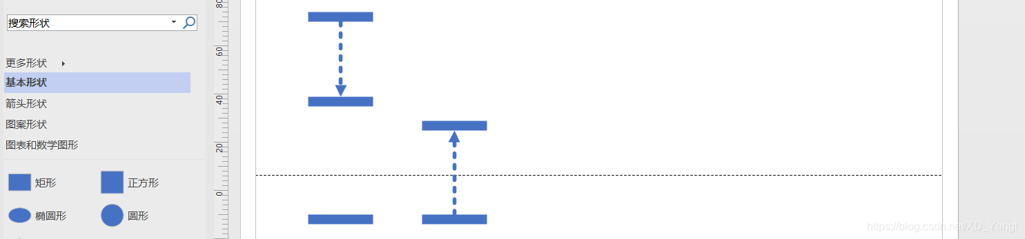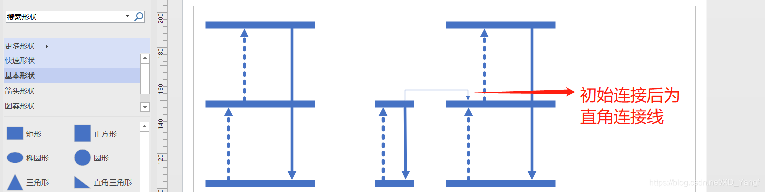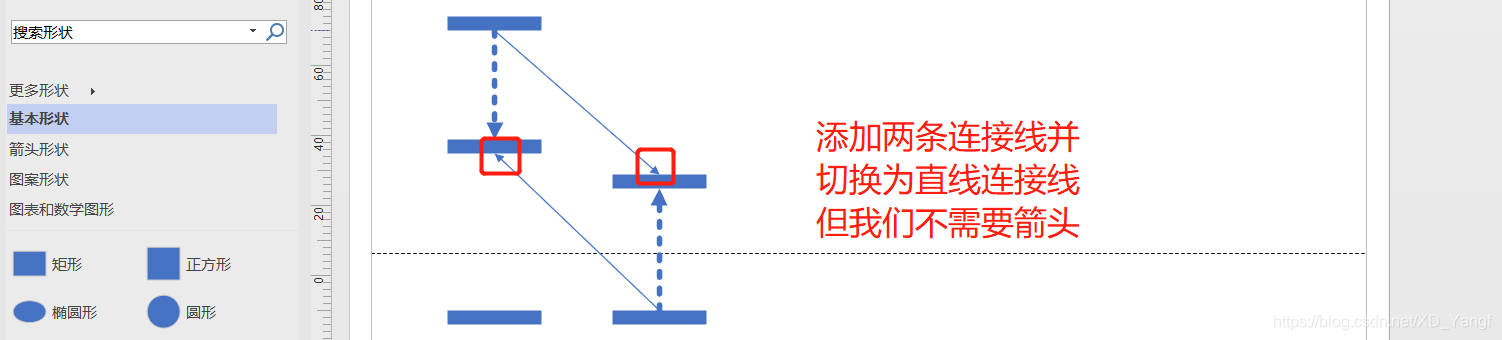 如下图,添加两条连接线,并将其切换为直线连接线。但是连接线是带有箭头的,而对于这两条连接线我们不需要箭头。