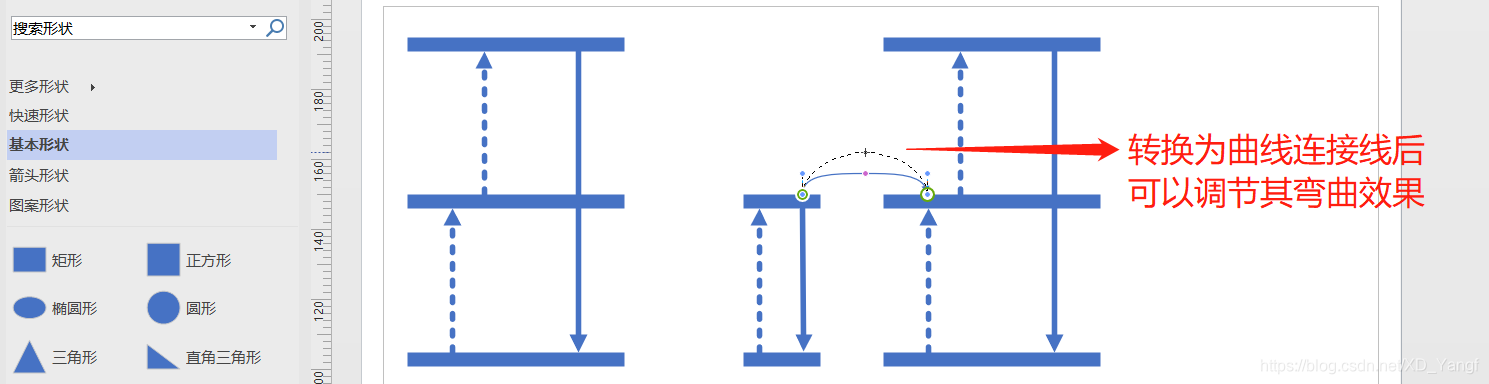 此时,需要将其转换为曲线连接线,并适当调节其弯曲程度。