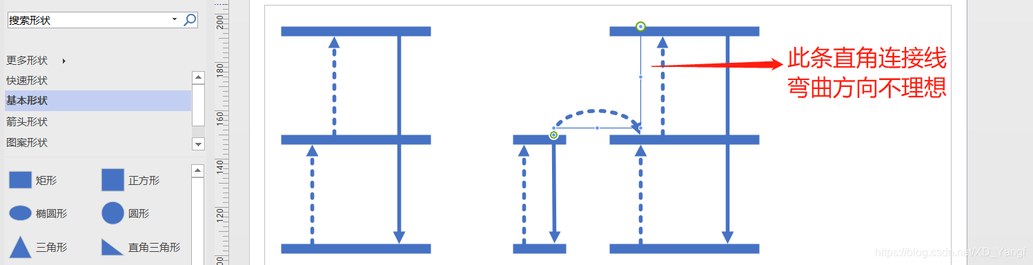继续添加第二条能量传递的连接线,发现直角连接线的弯折方向不对。