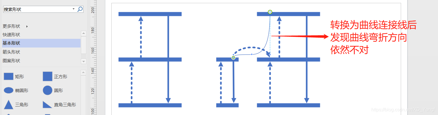 此时,将连接线转换为曲线连接线,发现曲线的弯曲方向依然不对。