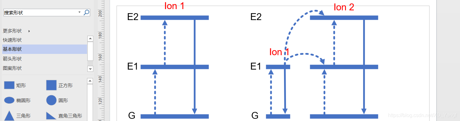 再接着,改变其虚线类型和粗细即可完成从一个离子能级传递到另外一个离子能级的光子能量传递过程示意曲线。