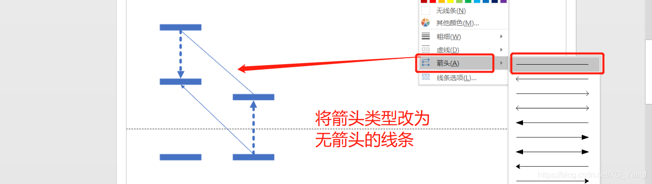 此时,需要把连接线箭头的类型改为无箭头的直线。