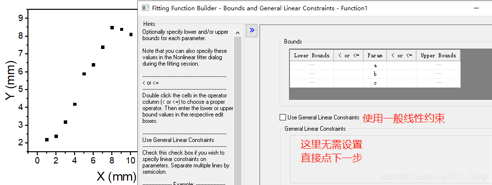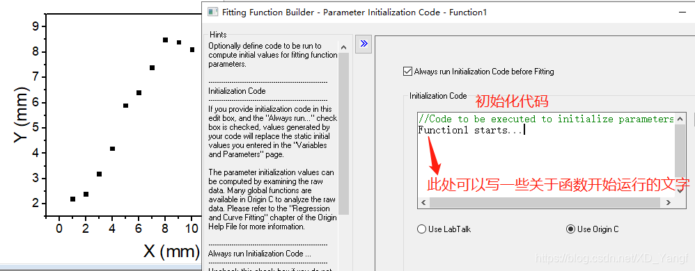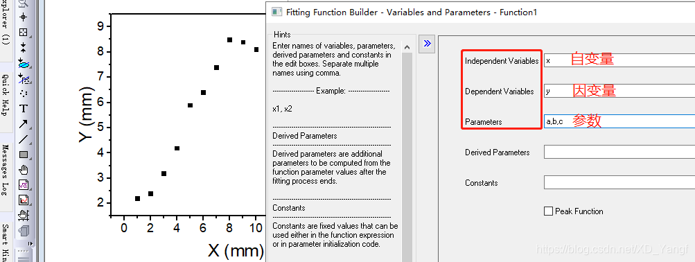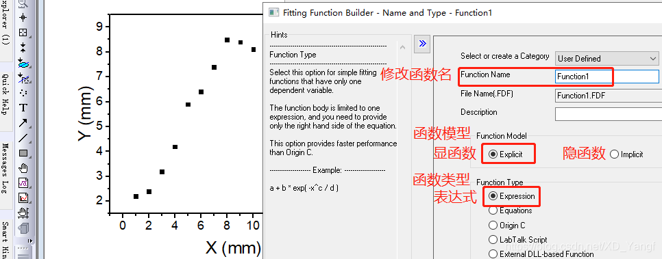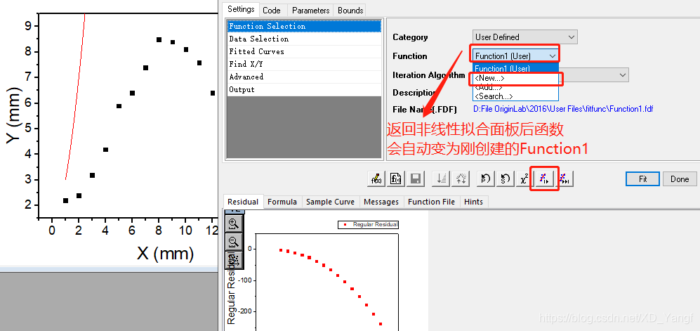 上一步点击Finish之后,会返回非线性拟合面板,此时,Function函数已经自动变为我们刚刚创建的Function1。