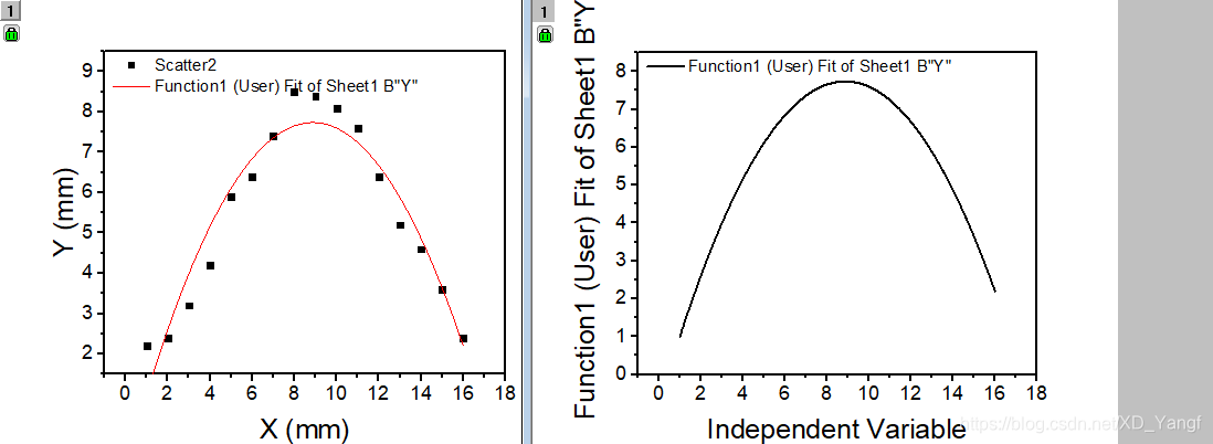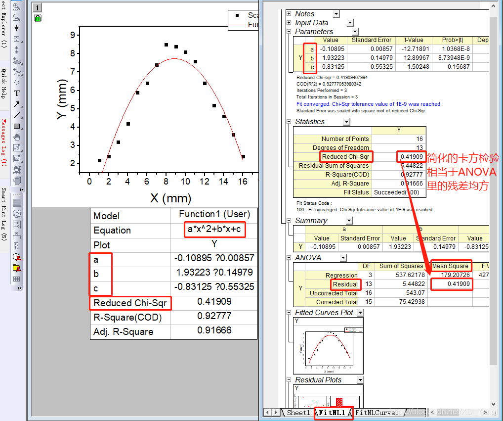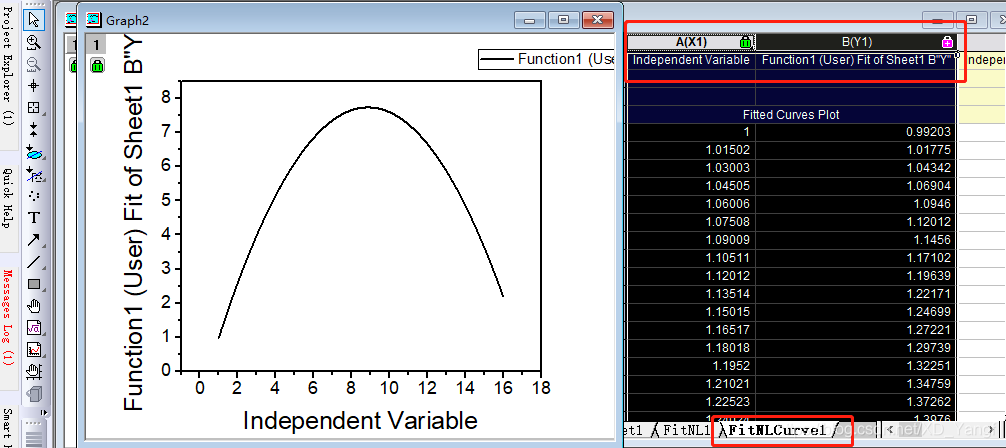 如果需要重新绘图,在表格的FitNLCurve1分页中,选中前两页,进行绘图即可。